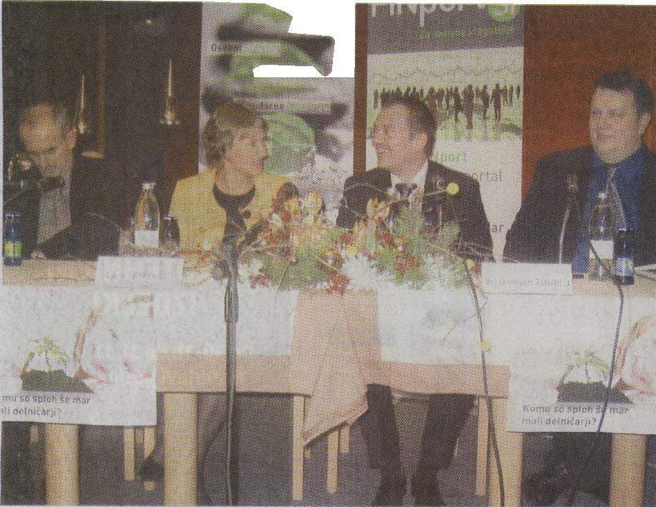 O tem, komu so še mar mali delničarji, so na četrtkovi okrogli mizi v Kranju spregovorili Ani Klemenčič, izvršna direktorica finančne družbe GBD, dr. Borut Bratina z Ekonomsko-poslovne fakultete v Mariboru, dr. Damjan Žugelj, direktor Agencije za trg vrednostnih papirjev (ATVP), ter Rajko Stanković, predsednik letos ustanovljenega Društva - Mali delničarji - Skupaj smo močnejši (MDS). Skupno so ugotavljali, da je situacija na področju pravic malih delničarjev v Sloveniji slaba, kar je mogoče podkrepiti s podatkom, da so javne razprave o njihovih pravicah sila redke, četudi je zagotavljanje delničarskih pravic, še posebej manjšinskih, osnova za dobro delujoč borzni trg.