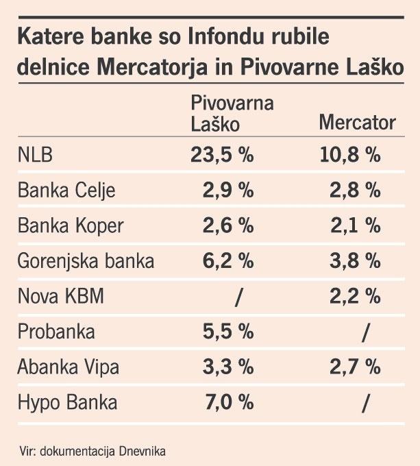 Začetek zgodbe sega v lanski avgust, ko je sedem domačih in ena tuja banka zaradi neporavnavanja obveznosti Infondu Holdingu, ki je bil takrat prek verige povezanih podjetij v lasti Boška Šrota, zaseglo 51 odstotkov delnic Pivovarne Laško in 24,4 odstotka delnic Mercatorja. Banke so deleže v obeh družbah zasegle v dobrih dveh tednih lanskega avgusta, pri čemer so jih nekatere skoraj hkrati prenesle na podjetja v njihovi lasti. Čeprav so v Infondu Holdingu bančni "rubež" skušali preprečiti z zahtevo za izdajo začasne odredbe in napovedjo odškodninskih tožb zoper banke, je družba, ki so ji bančne zaplembe po lastnih navedbah povzročile 145-milijonsko izgubo, že nekaj mesecev kasneje, natančneje decembra lani, končala v stečaju.